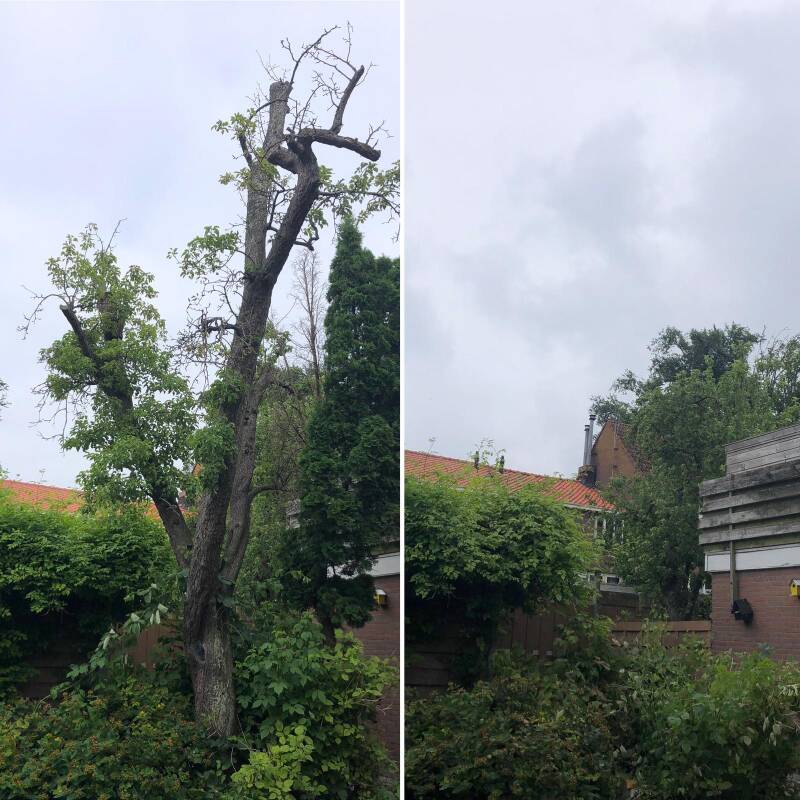Het kappen van een boom doen we door middel van klimtechnieken. Door de jarenlange ervaring kunnen we bomen op de meest moeilijke locaties verwijderen. Tevens kunnen wij ook de takken snipperen of afvoeren.